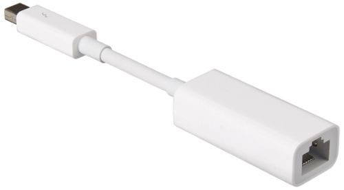 Connect an Ethernet cable to a MacBook that doesn't have one with this adapter from Apple. It clicks into an empty Thunderbolt port and supports speeds up to 1000 Mbps.