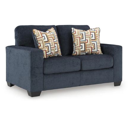 Looking to make a bold statement with color? Liven up your living room with the Aviemore loveseat. Its trend-right navy blue upholstery adds a playful pop of color to your decor. Bold and eclectic accent pillows complete the look. Pairing posh style with everyday comfort, this piece is a welcome addition to contemporary spaces.