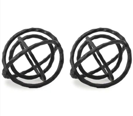 This sculpture brings contemporary art full circle. Interlocking metal rings in a black finish add an art gallery touch for a console table, bookshelf or mantel.