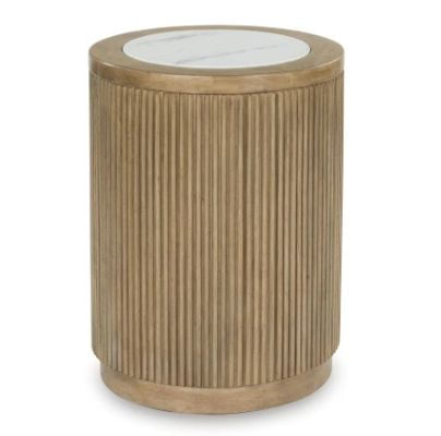 Elegance meets earthy charm in the Camdill end table. Crafting a contemporary living room? The faux marble top expertly pairs with the reeded base for a trend-right take on day-to-day function. It’s an ideal spot to rest remotes, a drink or small decorative accents.