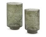 Create an even cozier ambiance in your home with the Clarkton candle holder set. The green sanded glass makes the soft glow of electric or real candles all the more beautiful. Stunning when displayed as a duo or standing alone, these holders are a simple way to upgrade the style of your space.