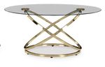 Fall in love with the contemporary design of the Crimonti accent coffee table . Crafted with tubular metal in a captivating champagne goldtone, each features a sleek drum design. The clear tempered glass tabletop offers both style and durability. Create a stunning focal point in your home with these one-of-a-kind tables.