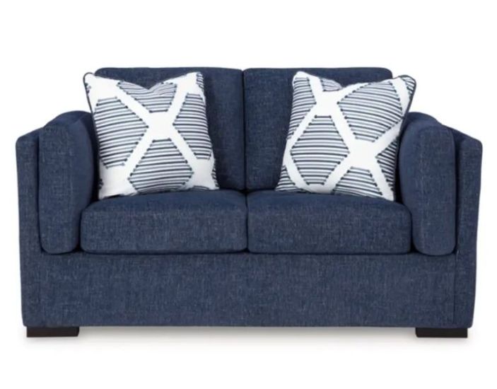Casual contemporary style, meet carefree lounging. With this loveseat, you don't need to sweat the small stuff. Thanks to its fresh navy hue, you can stay right on trend when you kick back and relax. And the arm bolster pillows keep you extra comfy. T