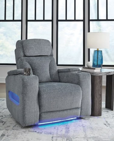 Chill-out time has never looked better. The Forest Lake power recliner's adjustable headrest ensures a perfect view of the TV no matter how far back you recline, while the extended ottoman takes your comfort to the next level. Handy charging features and storage cutouts put phones and e-readers at your fingertips. Plush yet practical Next-Gen Nuvella™ performance fabric and ambient lighting complete the theater-style experience. It's time to relax, nap or binge-watch in the best seat in the house.