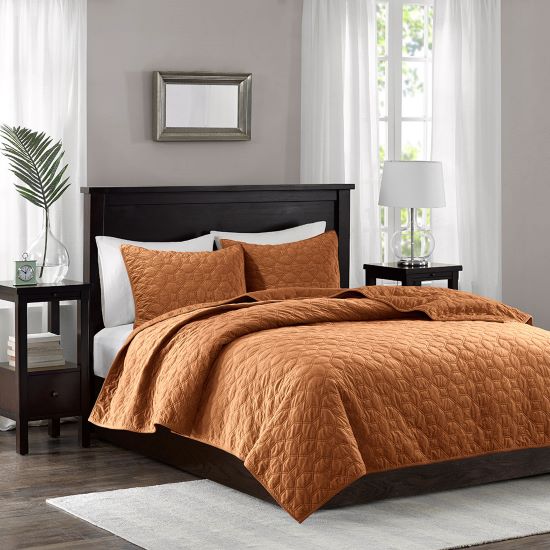 The Madison Park Harper Velvet 3 Piece Quilt Set offers a casual and comfortable update to your bedroom. The polyester velvet quilt features a soft texture with a geometric quilted design, for a rich look and feel. Matching shams pair beautifully with the quilt to complete the quilt set. Providing a charming layering piece to your bed, this quilt has an antimicrobial treatment that helps reduce bacteria buildup and odors, keeping the fabric fresh longer.