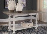 the Havalance flip-top sofa table goes to town on bygone beauty. Its distressed two-tone treatment blends a weathered gray with vintage white for an utterly charming effect. Expecting company? Simply open the flip-top panels to instantly create an impromptu dining space.
