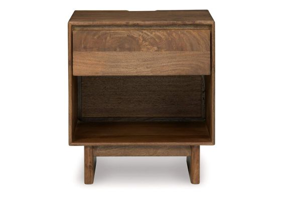 With its back-to-nature sensibility, the Isanti nightstand is a natural fit for outfitting your peaceful sanctuary. A clean-lined design lets the beautifully organic quality and inherent luster of the mango wood shine through. From its smooth “hardware-less” drawer to the refreshing light finish, it’s a piece sure to make a statement in your naturally beautiful home. Rest assured, with a built-in power supply and dual USB ports conveniently located along the back edge of the top, this nightstand has your charging needs covered.