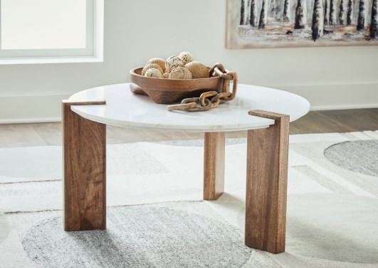 With its back-to-nature sensibility, the Isanti coffee table is a natural fit for outfitting your modern living area. Its clean-lined design lets the beautifully organic quality of the mango wood shine through, complemented by the sleek refinement of a marble top. This table is the ideal spot for snacks, beverages and that stack of unread books.