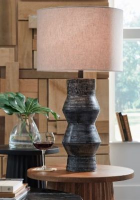 Add a touch of casually cool style to your home with the Kerbert table lamp. The terra cotta base sports a black rubbed finish that effortlessly complements a wide range of decor and color palettes. This versatile and illuminating choice is sure to be the glowing centerpiece of your TV room, inner sanctum or home office.