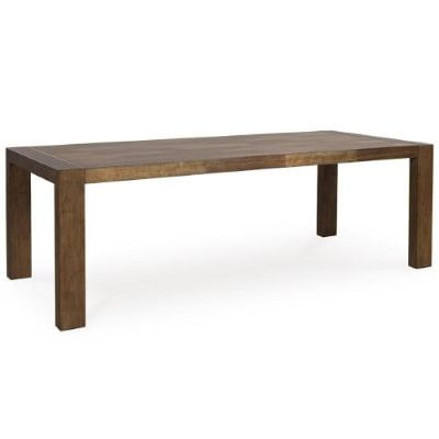 Experience worry-free living with this dining table. Designed to effortlessly blend casual and refined aesthetics, the rich brown butcher block veneer exudes a modern, relaxed vibe you'll love. Styled to comfortably seat eight, this piece makes room for one and all.