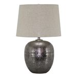 Stay trendy with hammered aluminum that exudes urban refinement. The Magalie table lamp’s silvertone sheen will fill any space with well-lit splendor.