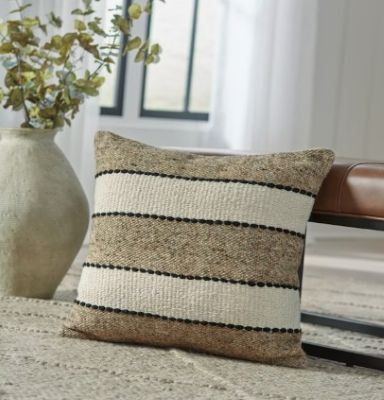 Teeming with texture, this pillow makes a fresh design statement. With stripes that delight and hues that create a warm and cozy feeling, it adds a touch of modern elegance to your home's decor.