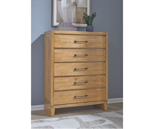 If you appreciate minimalist style, this chest is the ideal choice. Its smooth, simple finish has a relaxed sensibility, combining a relaxed contemporary design with modern charm. The spacious drawers are accented with sleek metal pulls in a dark bronze hue. What a lovely addition to your casually elegant decor.