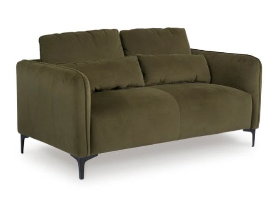 Make a bold statement with this contemporary loveseat that combines striking black metal legs with meticulous comfort details. The attached seat cushion maintains a clean, tailored look while the reversible back cushions ensure lasting comfort and versatility. The high-quality foam creates the perfect balance of support and comfort, while included pillows add style and coziness.